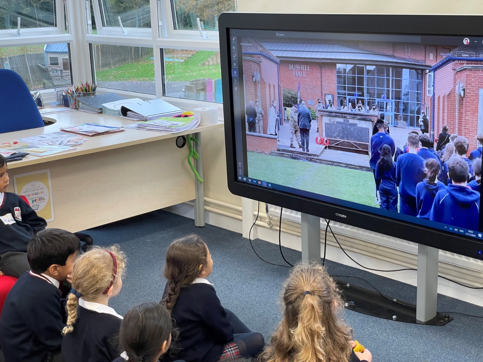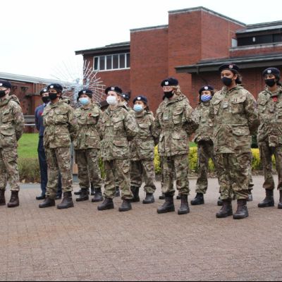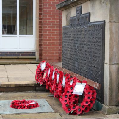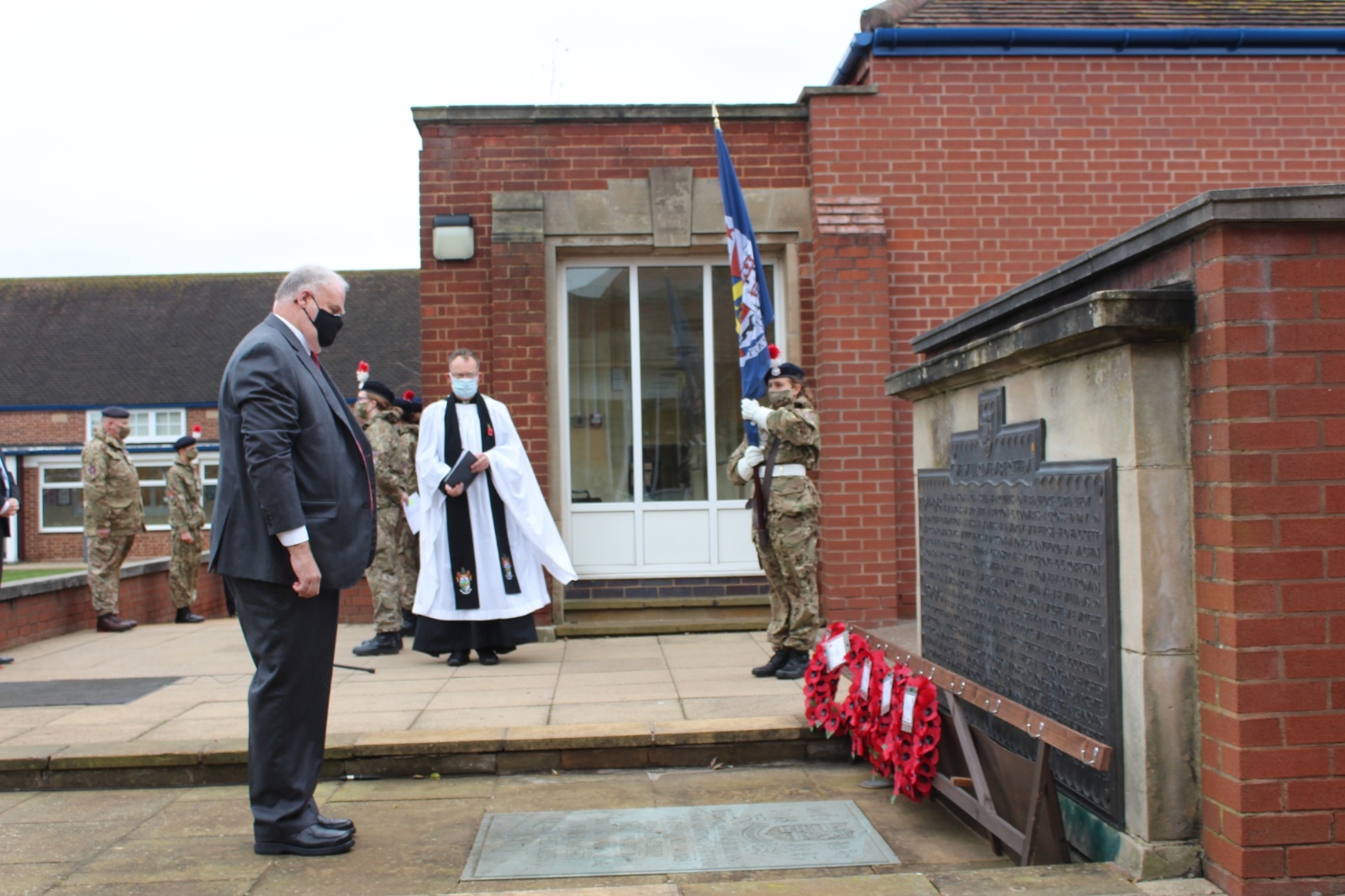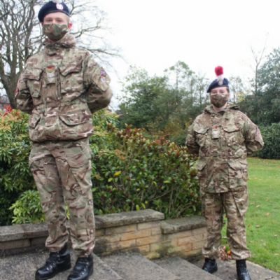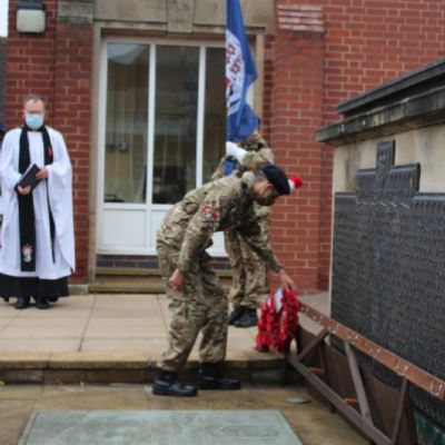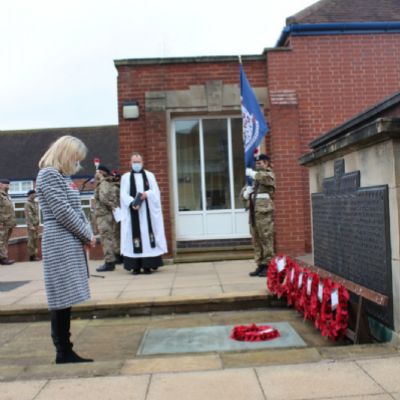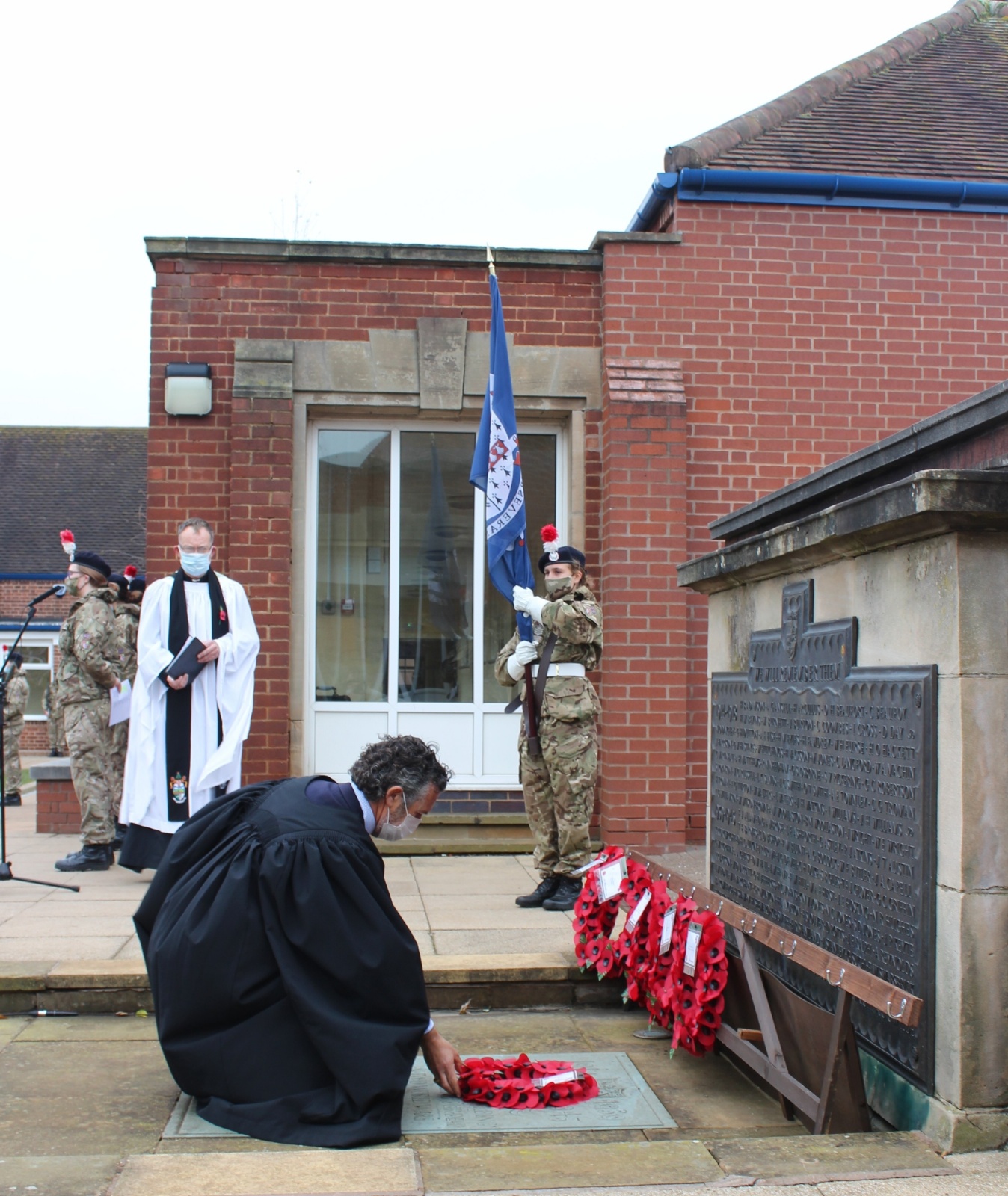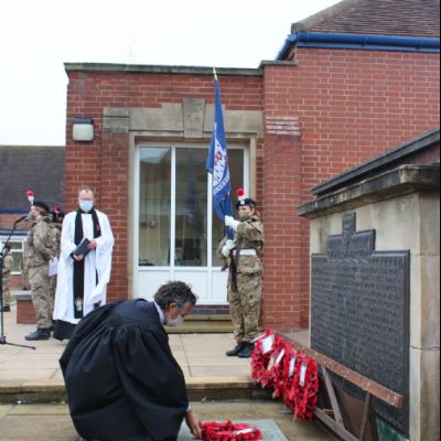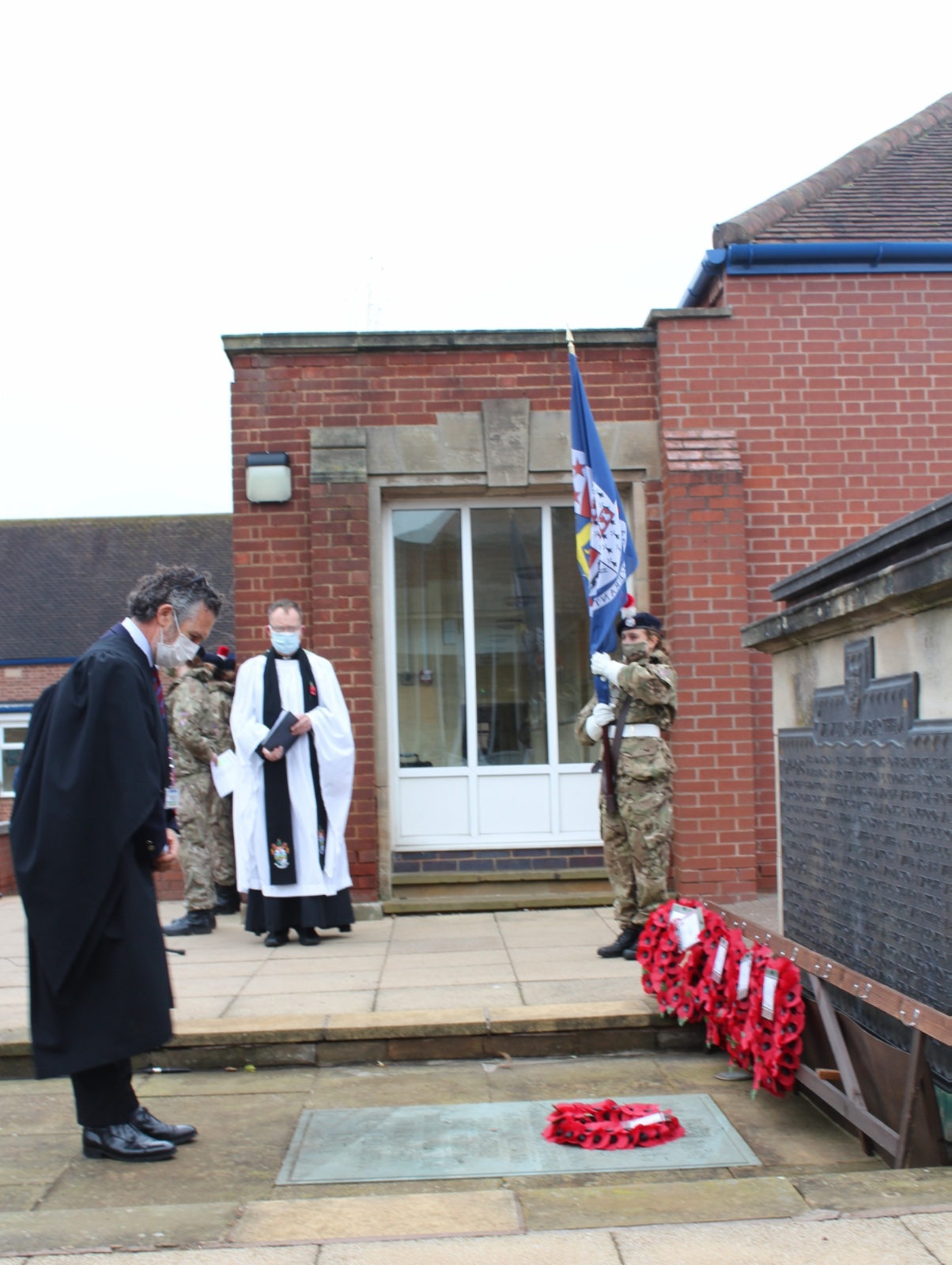Images from our socially distanced 2020 Remembrance Service with only our Upper Sixth students in the Quad and all other pupils watching a live stream with their bubble in their classrooms.