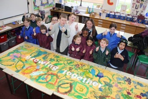 The children, alongside eight from Solihull School, created a banner on the theme of 'growing together'.